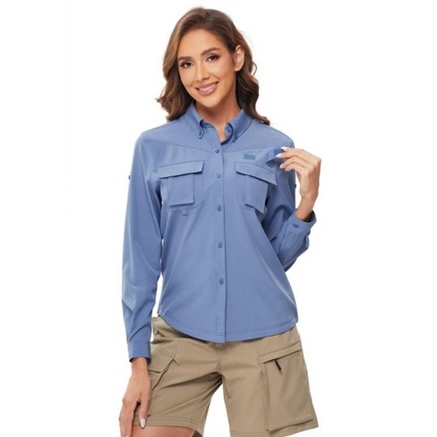 Women s Upf 50 Uv Sun Protection Safari Shirt Back Mesh lined Long Sleeve Button Down Fishing Shirts Hiking Shirts For Women Dusty Blue 2xl Target Very well made.