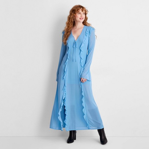 Women s Long Sleeve Ruffle Maxi Dress Future Collective Light Blue Xxs Target Very well made.