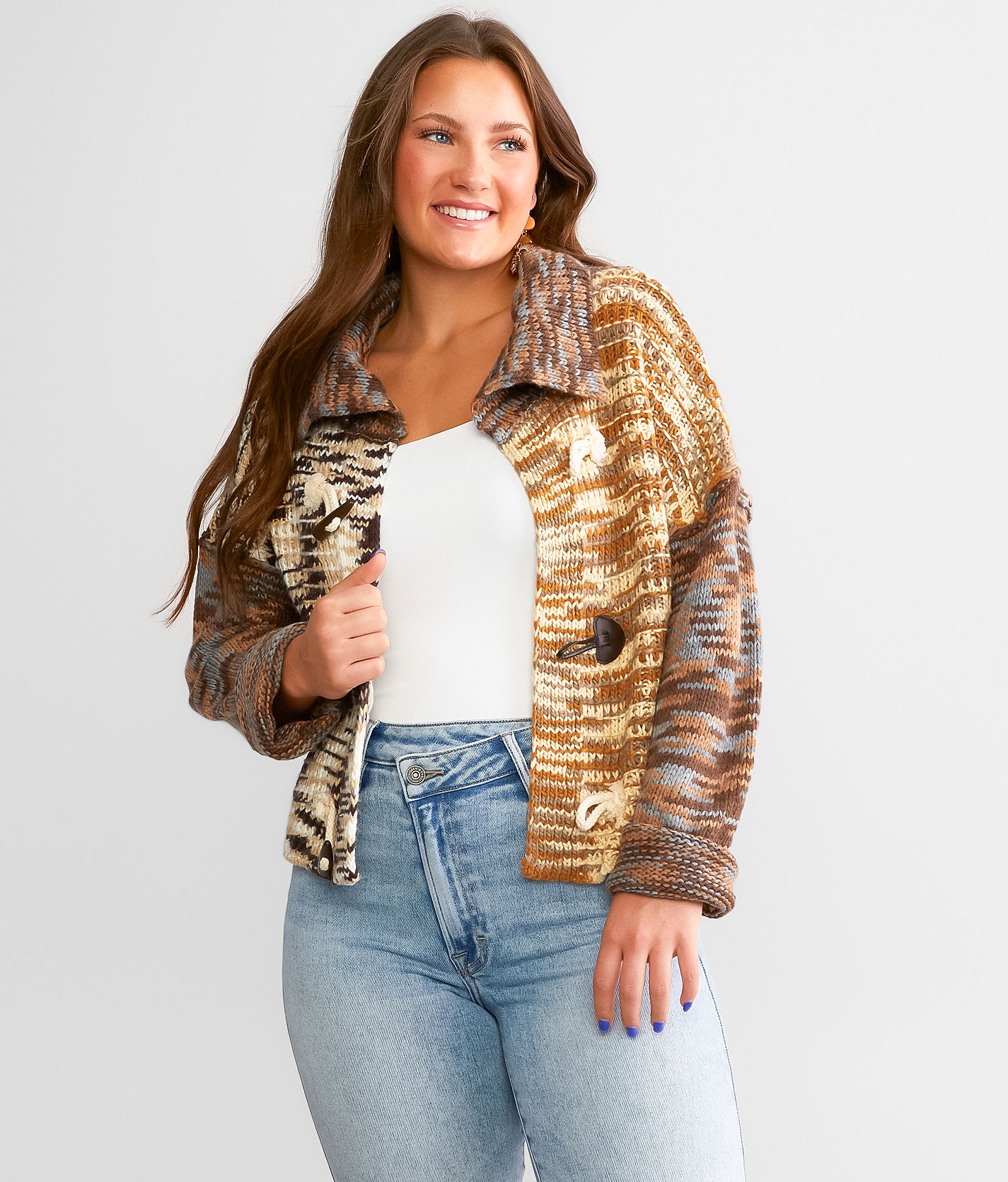 Love Riche Mixed Marl Cardigan Sweater Women s Sweaters in Brown Mix Buckle Very well made.