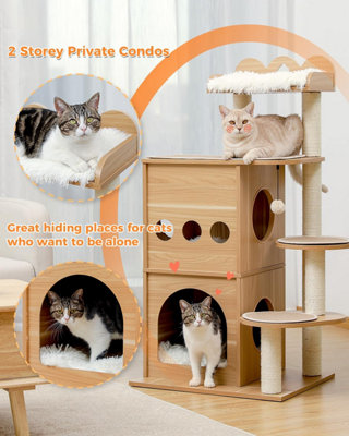 Multi level Platform Wooden Cat Scratching Tree Natural Cat Tree With Hammock luxury cat tower SKYLARK NETWORK CO. LTD Very well made.