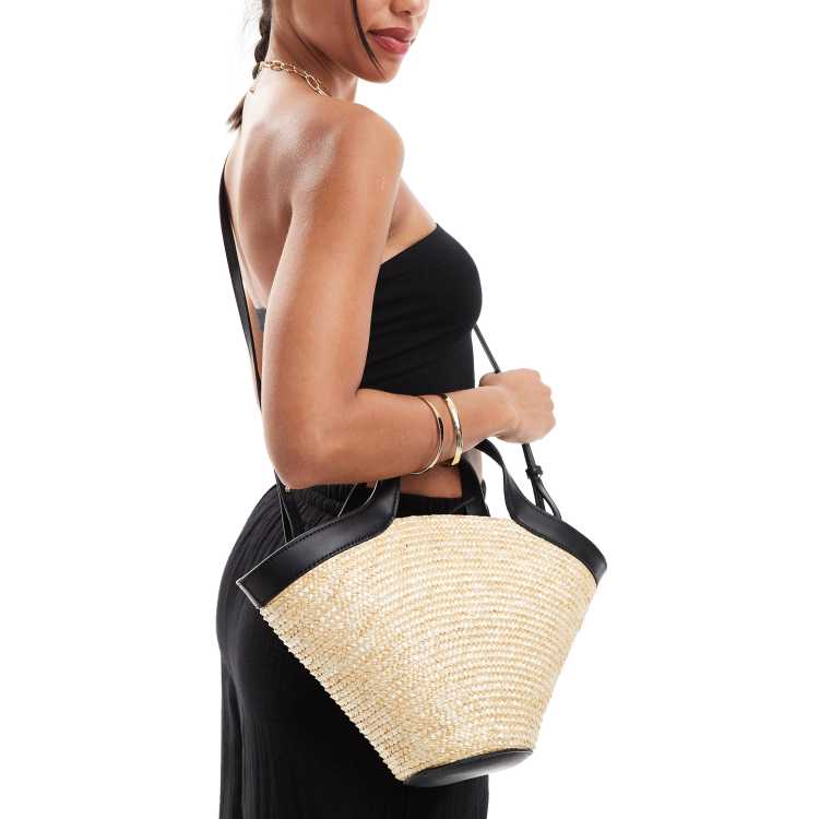 Mango Sac a main en raphia avec bandouliere contrastante Beige clair ASOS Very well made.