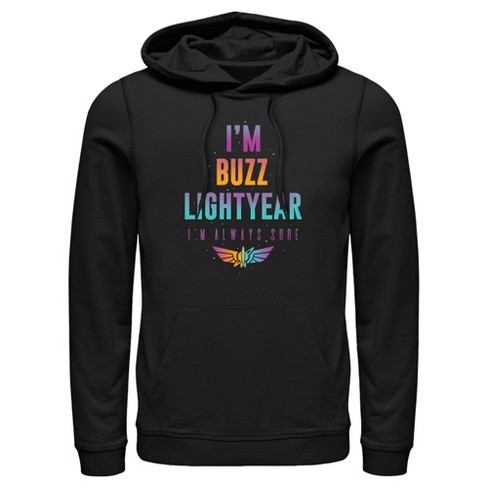 Men s Lightyear I m Buzz Lightyear I m Always Sure Pull Over Hoodie Black Medium Target Very well made.