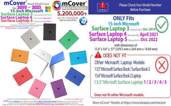 mCover Hard Shell Case for 15 inch Microsoft Surface Laptop 3 4 5 Computer iPearl mcover chromebook case laptop case Very well made.
