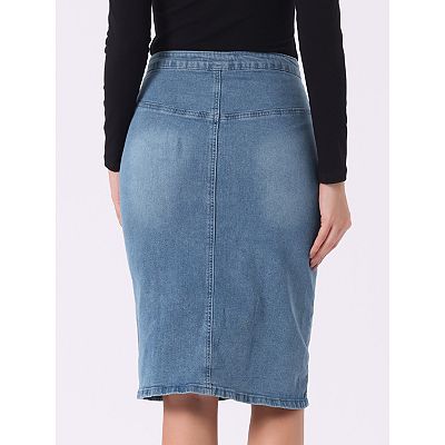 Women s Casual Jean Skirt High Waist Front Slit Stretch A line Denim Skirts Very well made.
