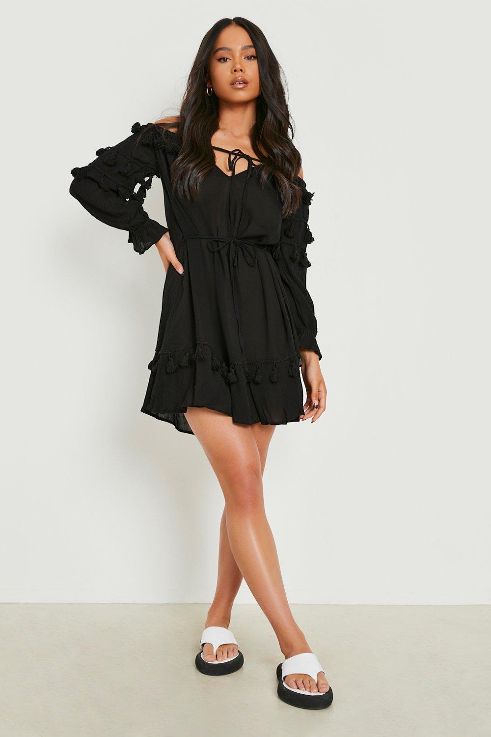 Petite Cheesecloth Tassel Skater Dress boohoo NZ Very well made.