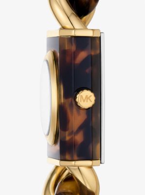 Michael Kors Petite Lock Pave Gold Tone Tortoiseshell Chain Watch MK4808 Very well made.