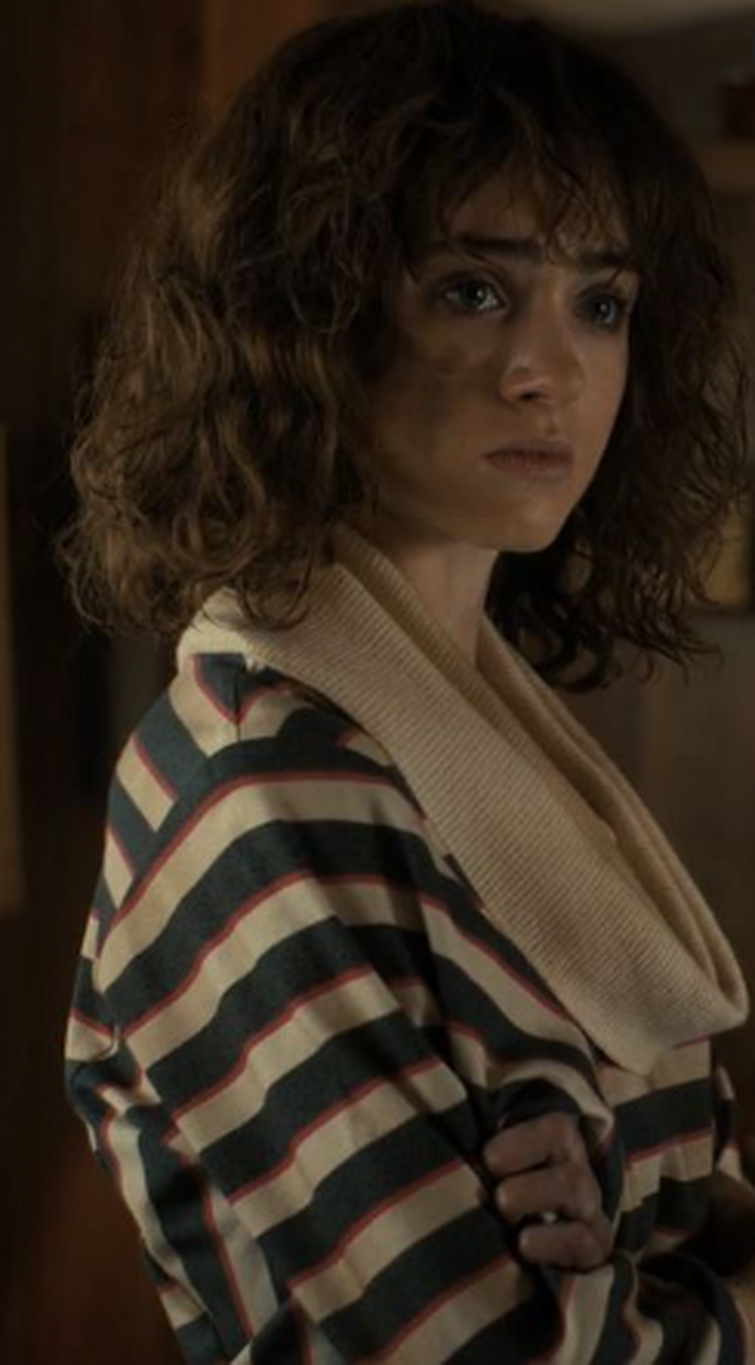 Le pull raye vintage de Nancy Wheeler Natalia Dyer dans Stranger Things S01E03 Spotern Very well made.