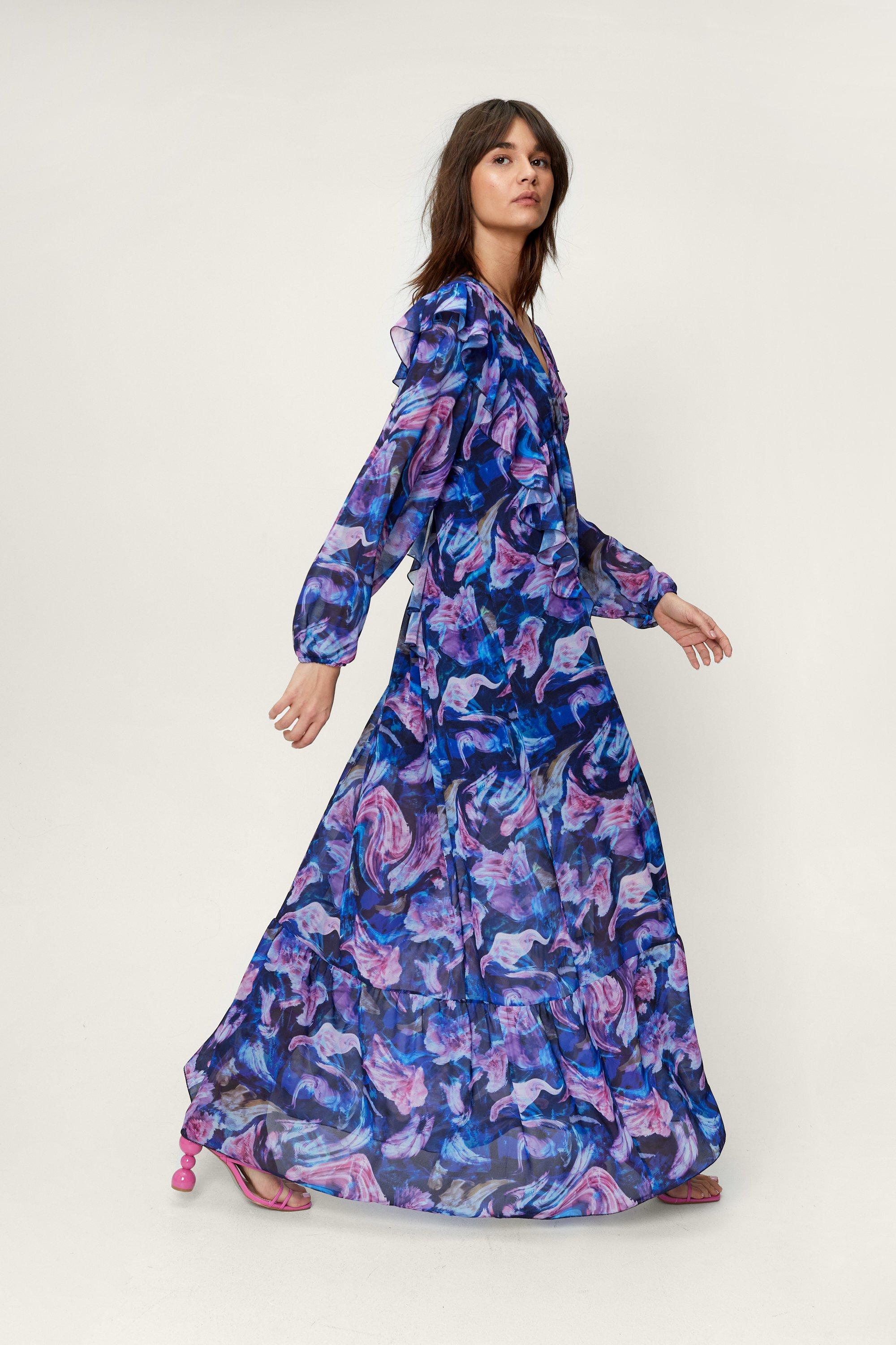 Blurred Floral Print Ruffle Maxi Dress Very well made.
