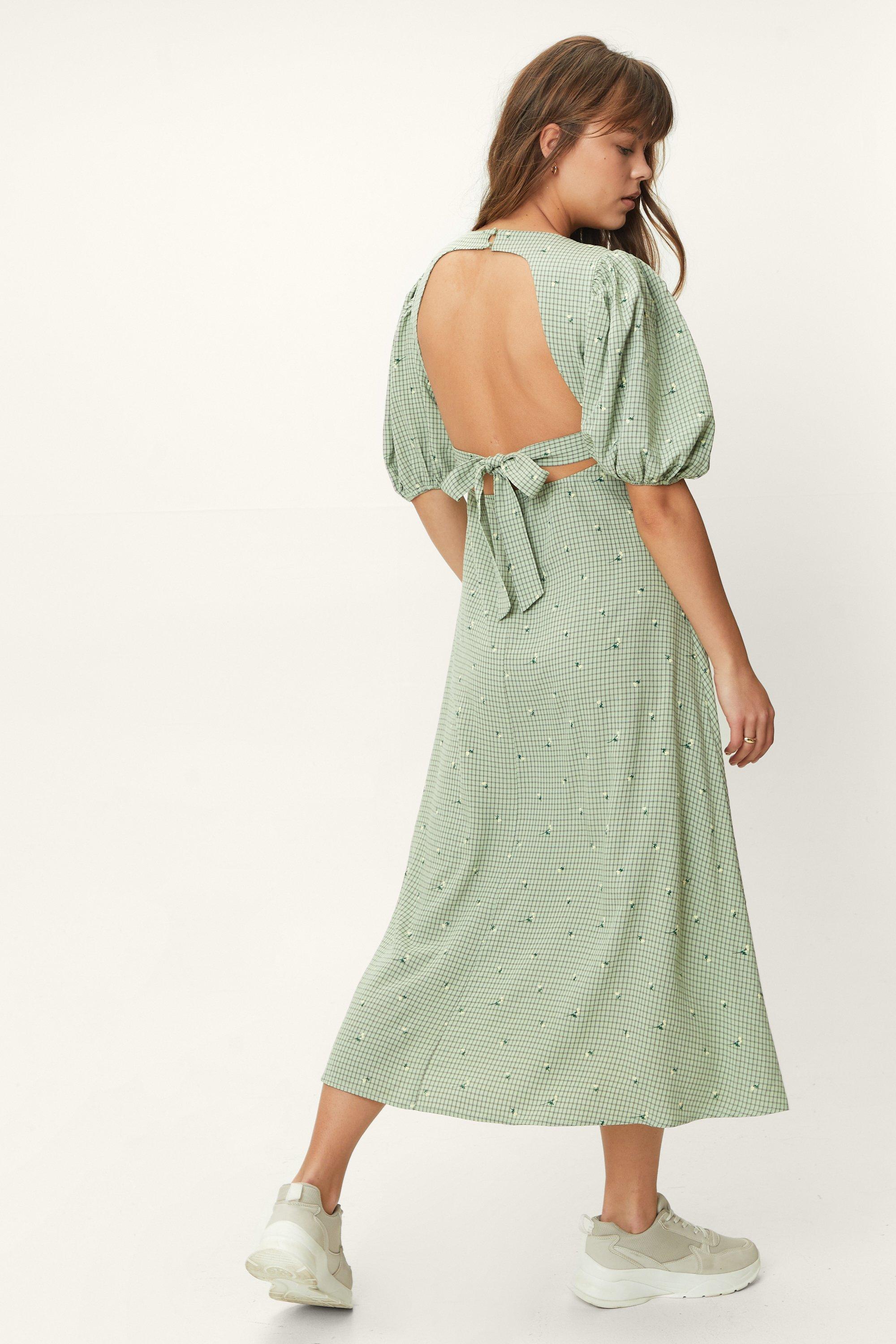Embroidered Check Puff Sleeve Midi Tea Dress Very well made.