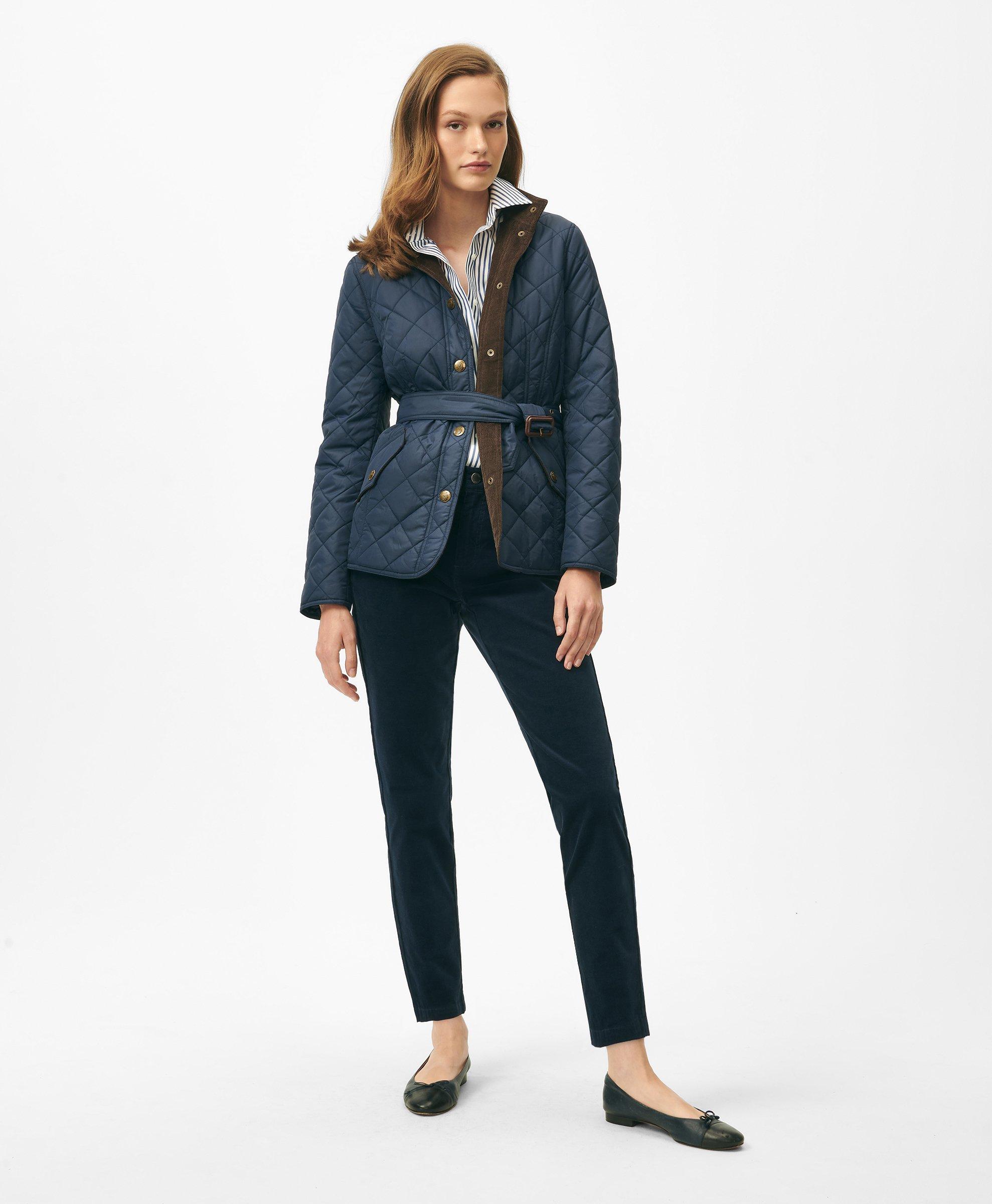 Brooks Brothers Women s Belted Military Inspired Quilted Jacket in Nylon Navy Size Small Shop Gifts for Her Very well made.