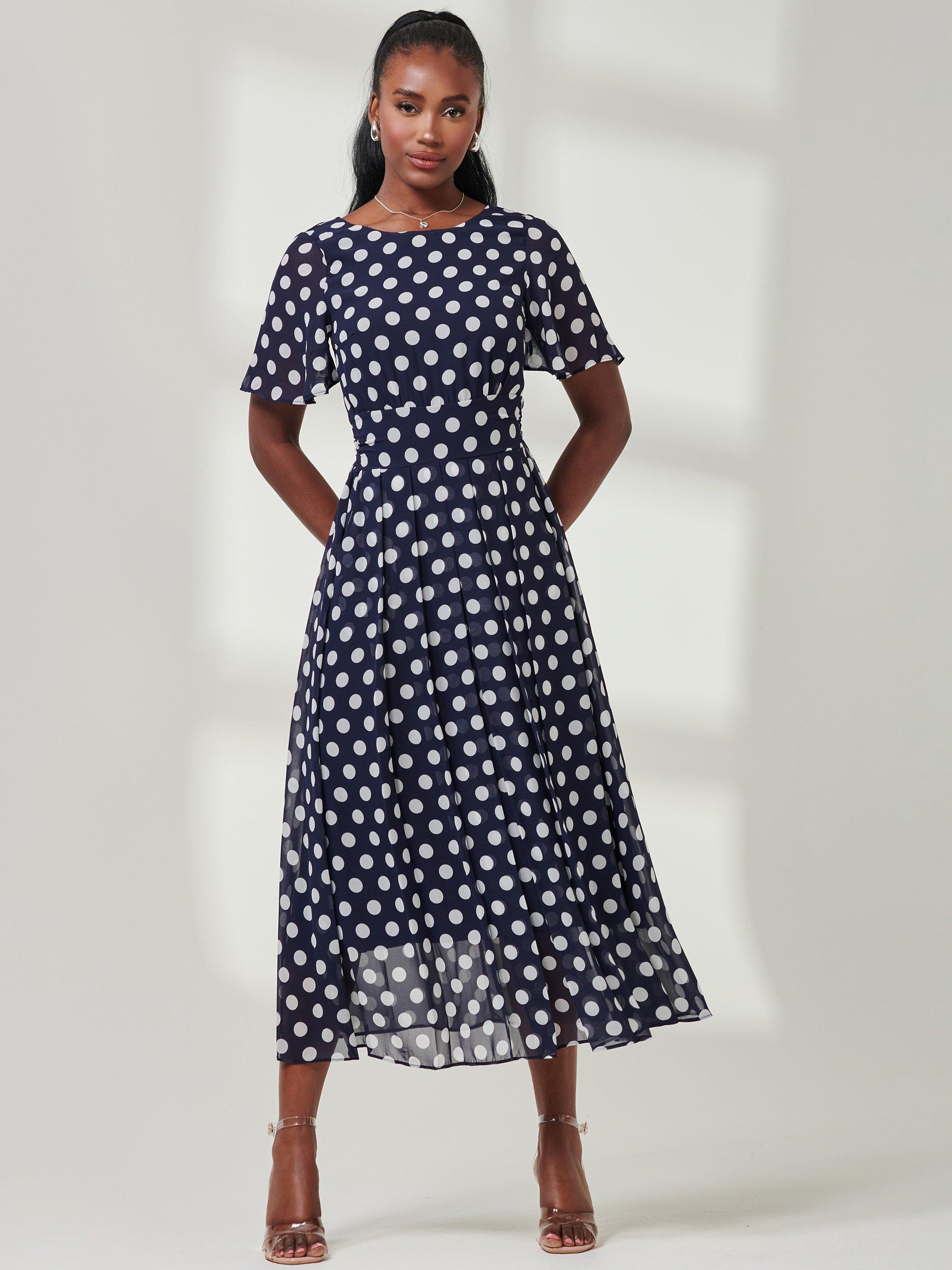 Women s Navy Polka Dot Midi Dress Mela New Look Very well made.