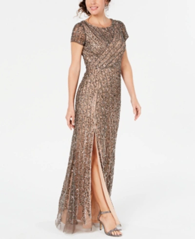 Adrianna Papell Beaded Mesh Floor length Dress In Lead nude ModeSens Very well made.
