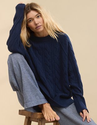 Aerie Chenille Oversized Turtleneck Sweater Navy Blue Size XL Woman s eBay Very well made.