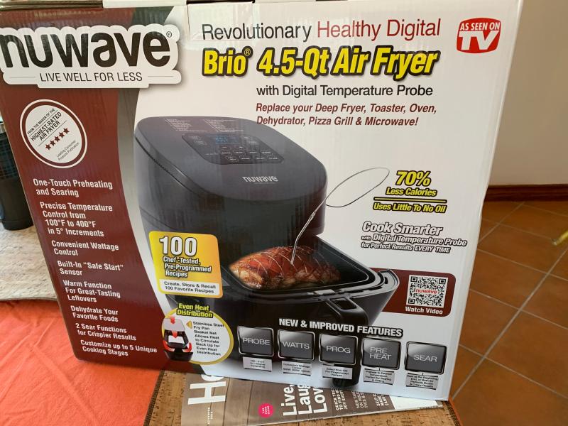 Amazon Nuwave 4.5 Qt Brio Air Fryer 100 Pre Programmed Recipes 100 Memory Slots to Save Recall Favorite Recipes 100 F 400 F Linear Thermal Very well made.