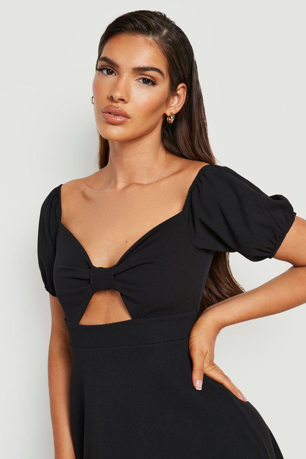 Scuba Off The Shoulder Cut Out Midi Skater Dress boohoo USA Very well made.