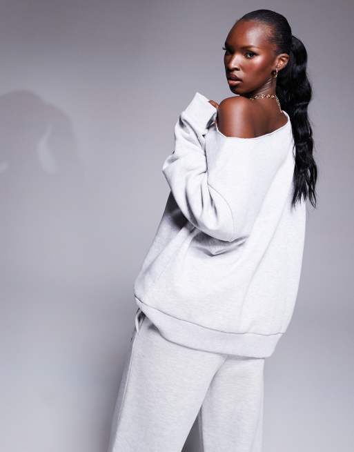 ASOS Weekend Collective Weekend Collective Off Shoulder Sweatshirt with Logo Embroidery in Ice Heather Gray Very well made.
