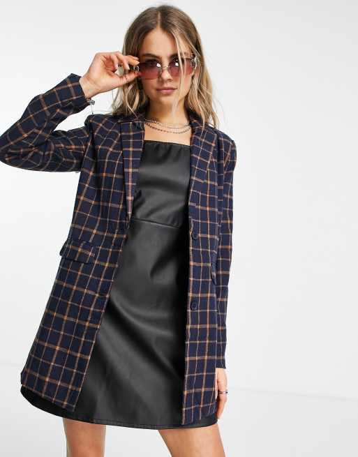 Heartbreak longline boyfriend blazer in navy and orange check ASOS Very well made.