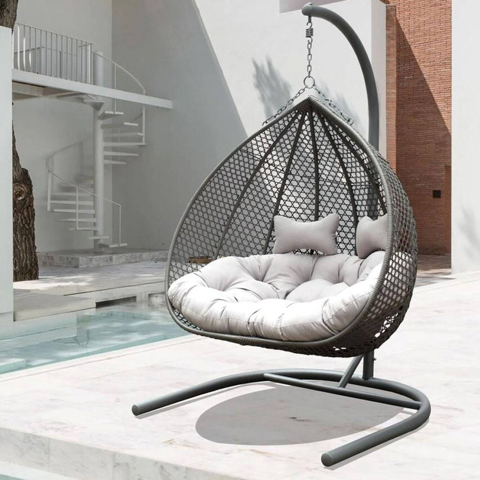Alfie Double Hanging Egg Chair Grey with Light Grey cushions Bunnings Australia Very well made.