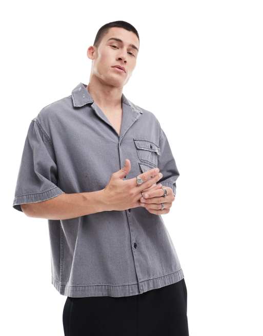 ASOS DESIGN boxy oversized camp cropped denim shirt in gray ASOS Very well made.