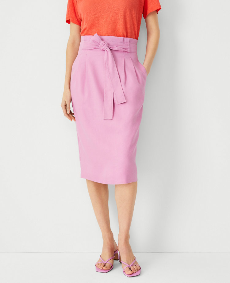 Linen Blend Tie Waist Paperbag Pencil Skirt Very well made.