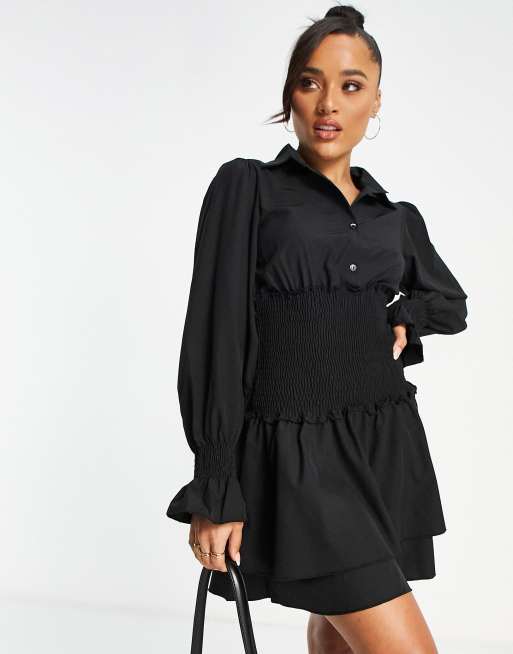 Parisian broderie anglais frill shoulder tie waist mini dress in white Very well made.