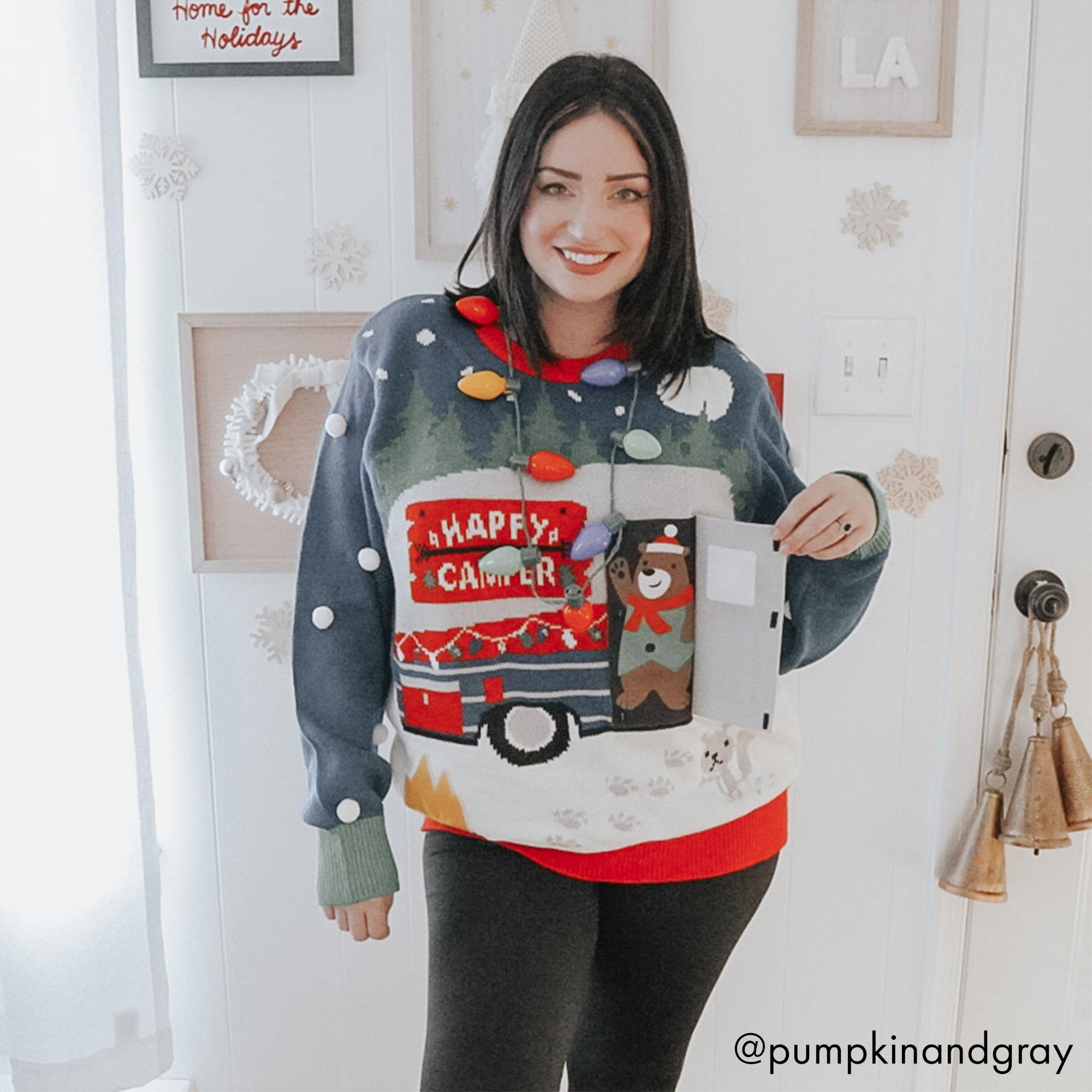 Adult Light Up Happy Camper Ugly Christmas Sweater Party City Very well made.