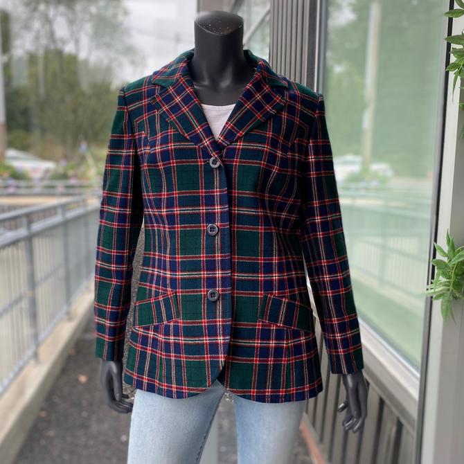 PENDLETON Vintage 1970s 100 Virgin Wool Women s 3 Button Tartan Plaid Boomerangs Multiple Locations Boston MA Very well made.