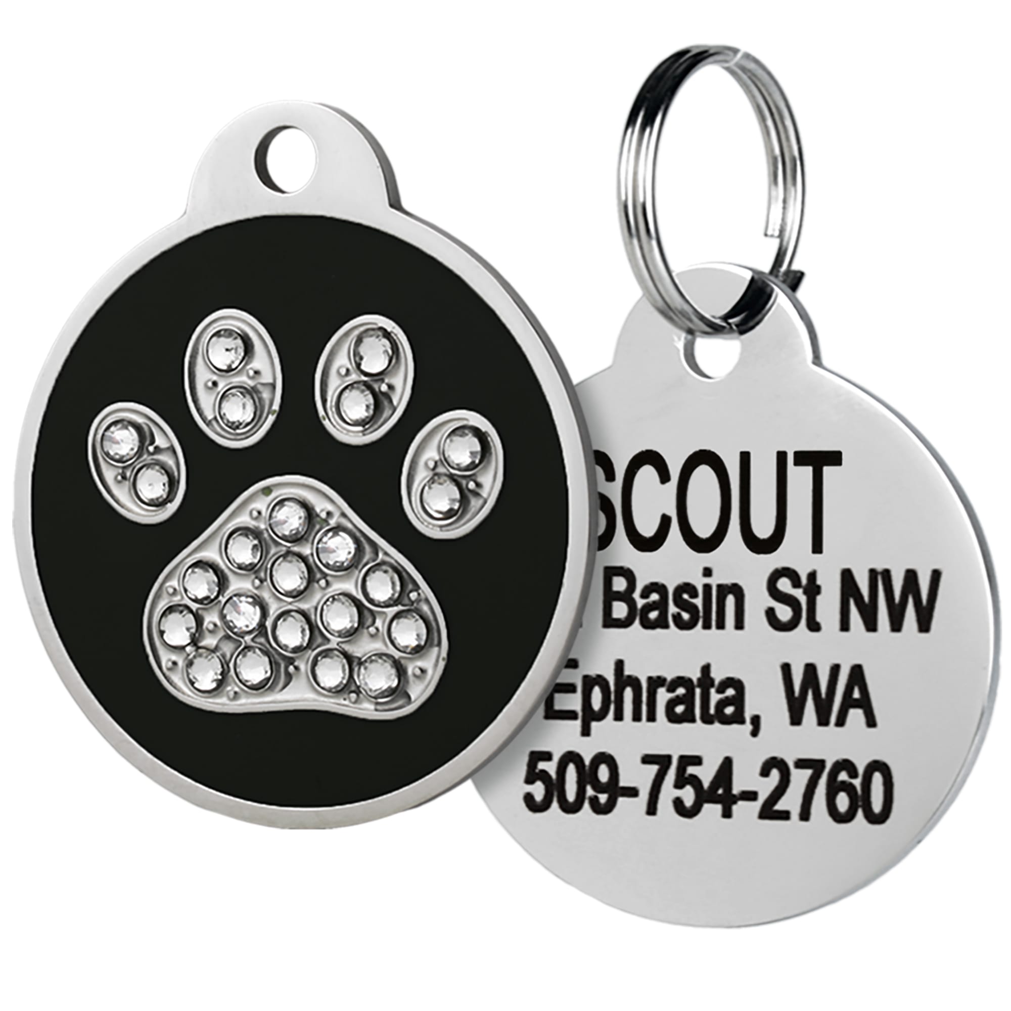 GoTags Paw Print Stainless Steel Pet ID Tags with Swarovski Crystals for Dogs and Cats Black Medium Very well made.