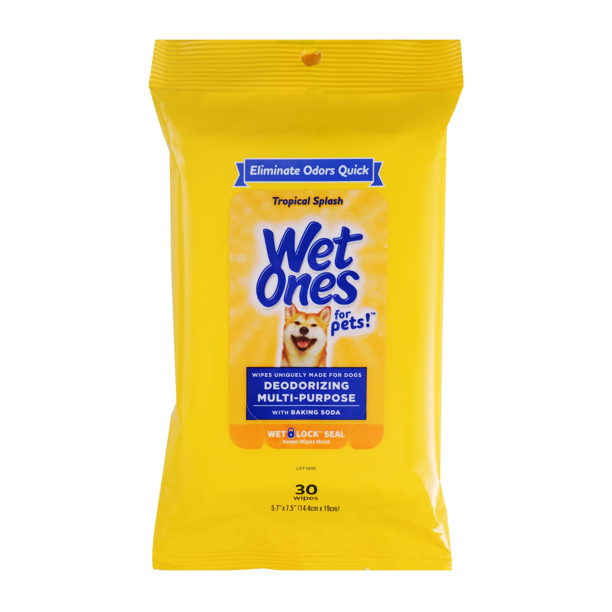 Wet Ones for Pets Deodorizing Multi Purpose Dog Wipes with Baking Soda in Tropical Splash Scent and Wet Lock Seal Count of 30 Very well made.