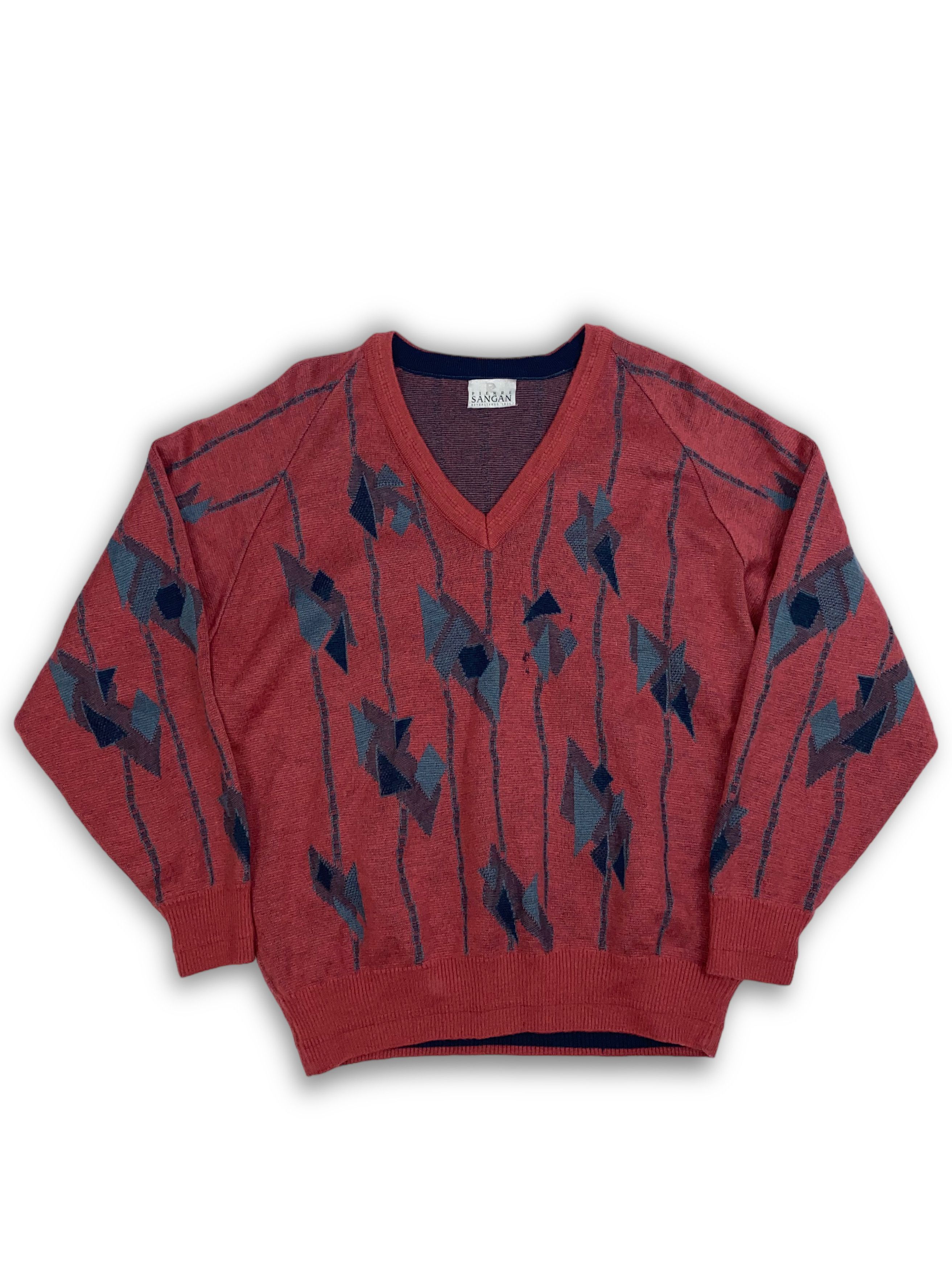 MyVintage Vintage Jumper Mens Vintage Green Blue Grey Patterned Pierre Sangan Jumper Size XXL Menswear Mens Clothing Vintage Fashion Very well made.