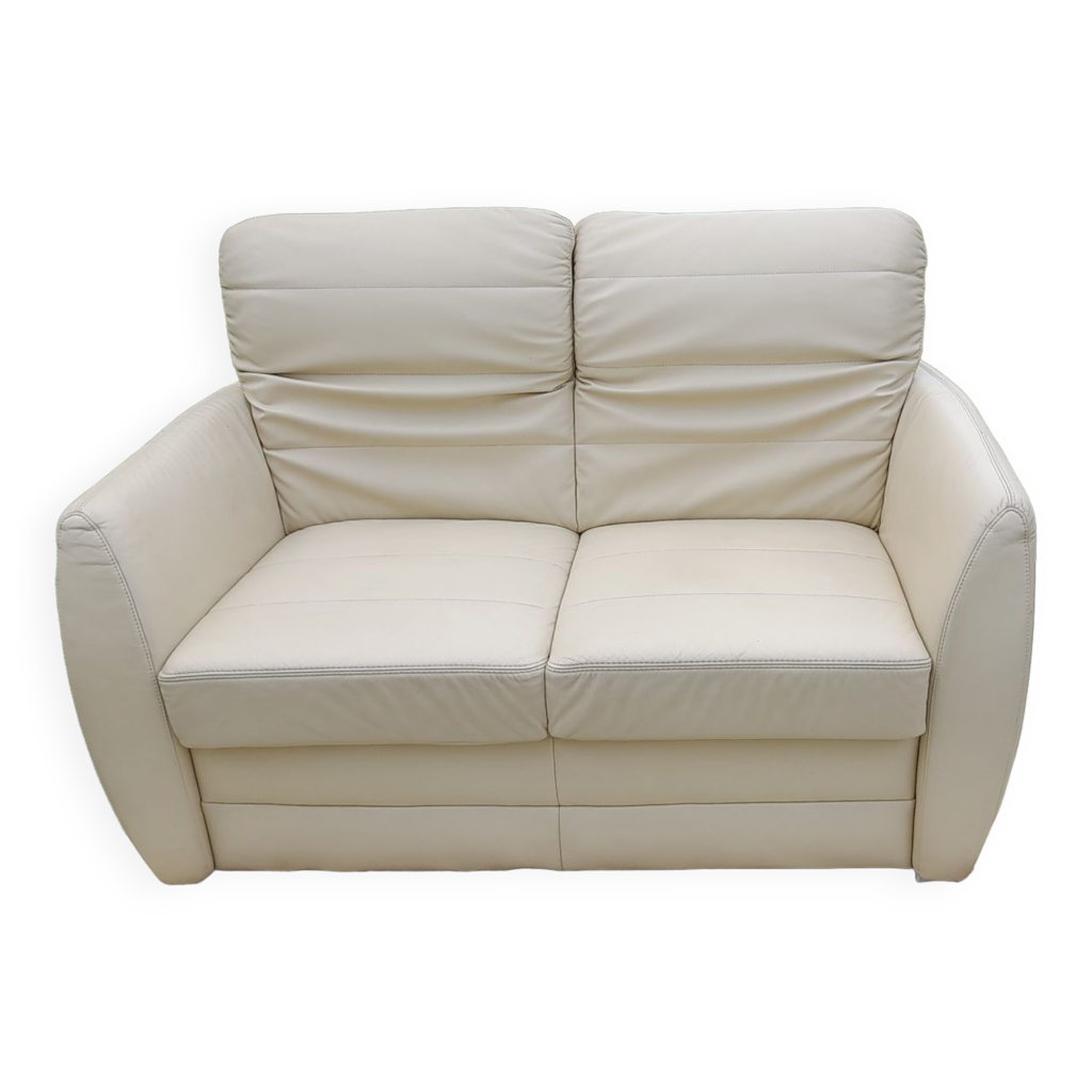 Leather sofa 2 places off white L 145 cm Selency Very well made.