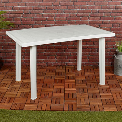 URBNLIVING 126cm Length White Large Summer Weather Proof Plastic Rectangle Table Garden Patio Dining Furniture Very well made.