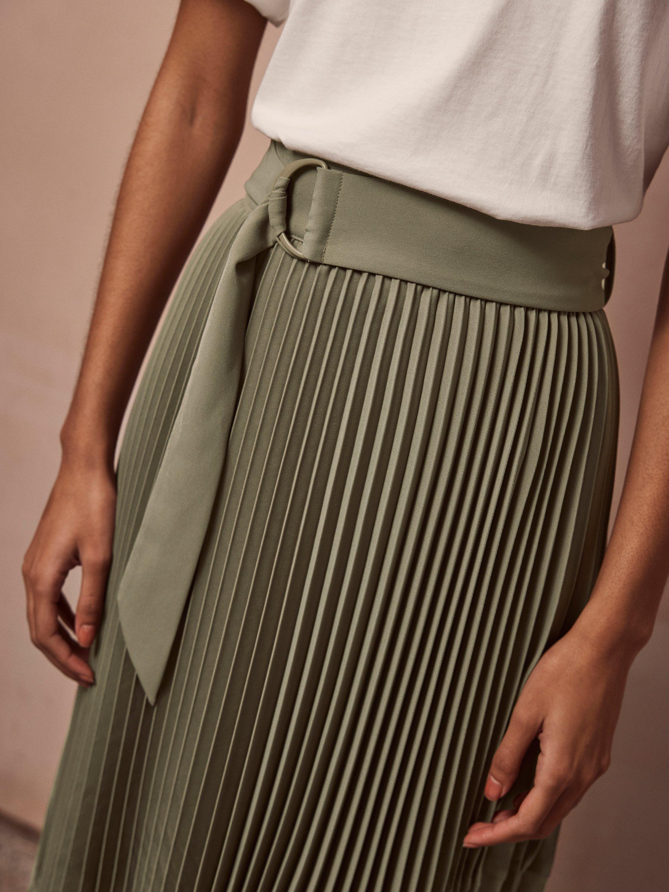 Waffle Pattern Pleated Midi Skirt in Khaki Very well made.