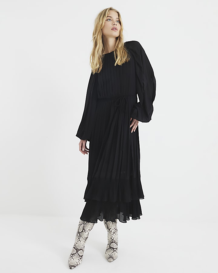 Black pleated swing midi dress River Island Very well made.