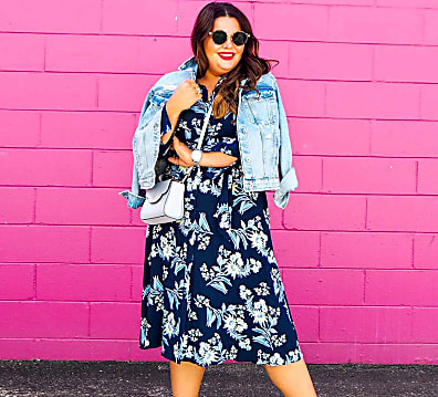 Plus size model Stacey McGreggor s floral midi dress Marks Spencer Very well made.