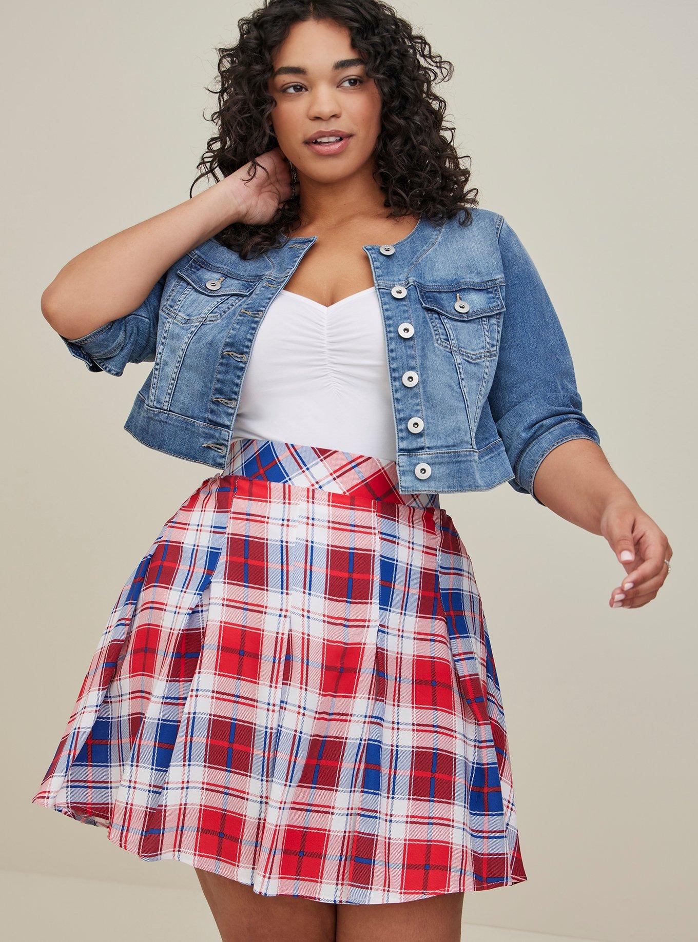 Plus Size Pleated Skater Skirt Challis Plaid Blue Red Torrid Very well made.