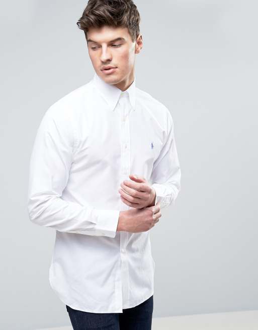Polo Ralph Lauren Slim Fit Poplin Shirt in White with Blue Polo Player Very well made.