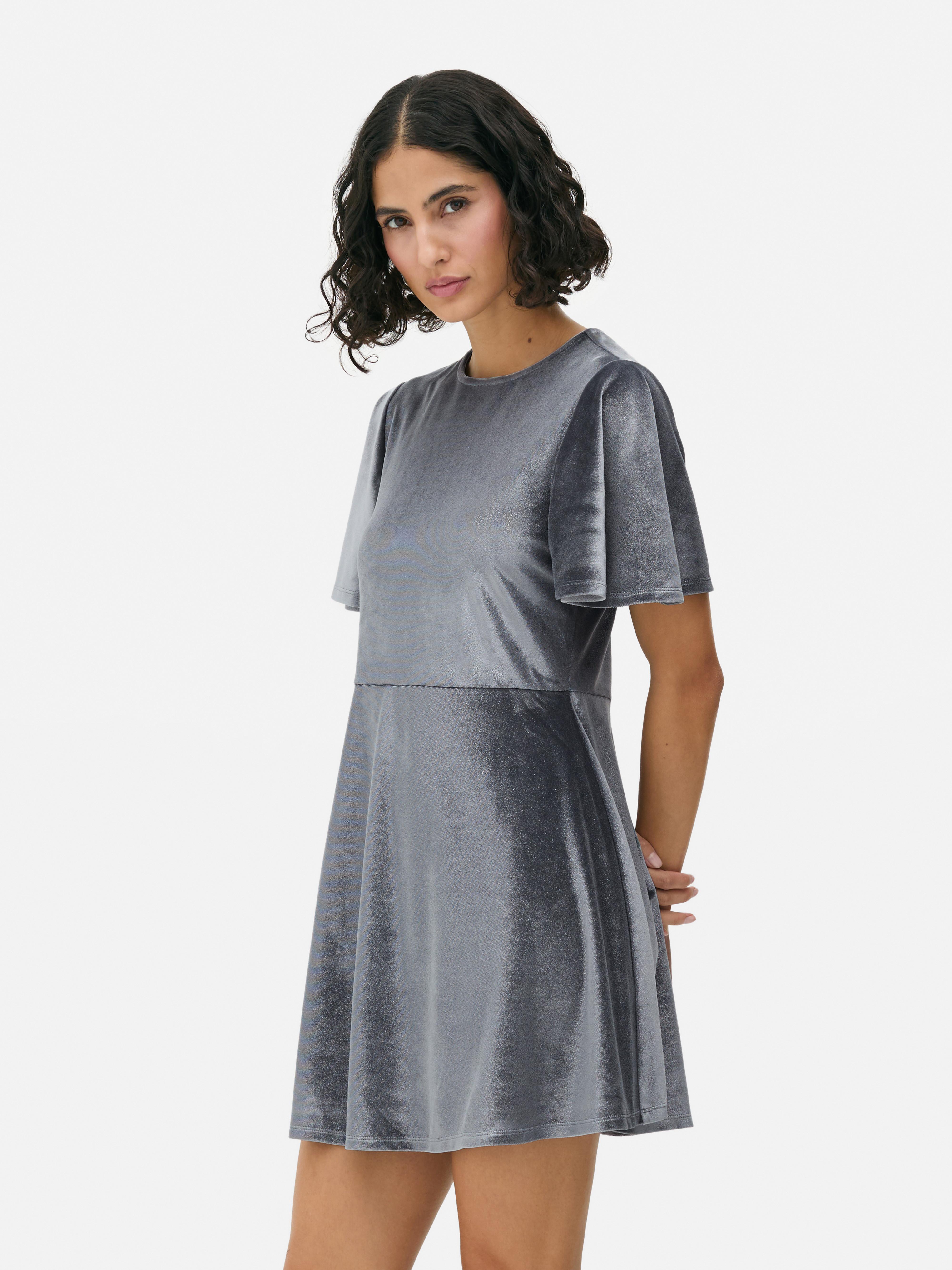 Women s Silver Velvet Angel Sleeve Mini Dress Primark Very well made.
