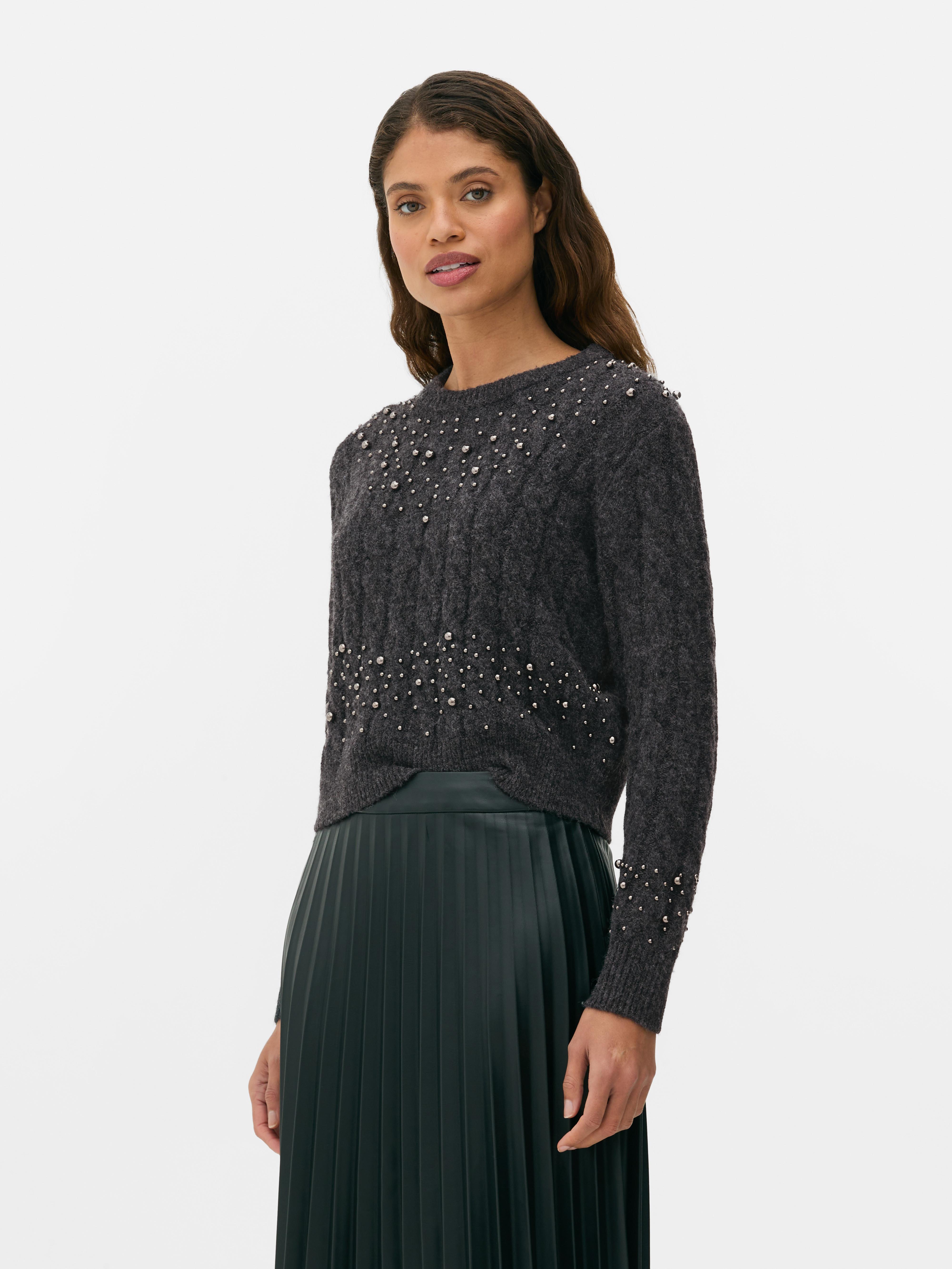 Womens Charcoal Bead Embellished Knitted Jumper Primark Very well made.