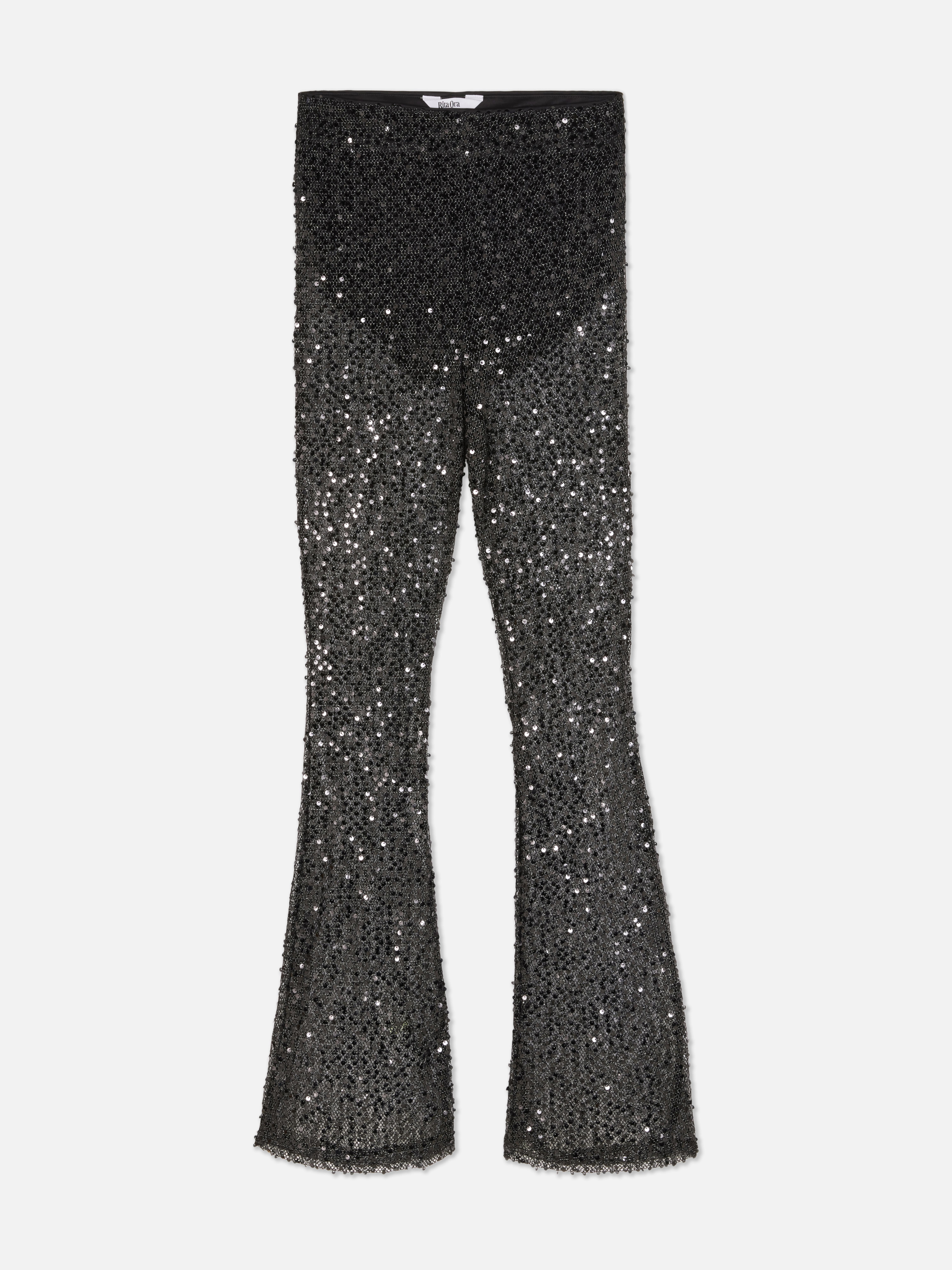 Womens Black Rita Ora Sequin Flared Leggings Primark Very well made.