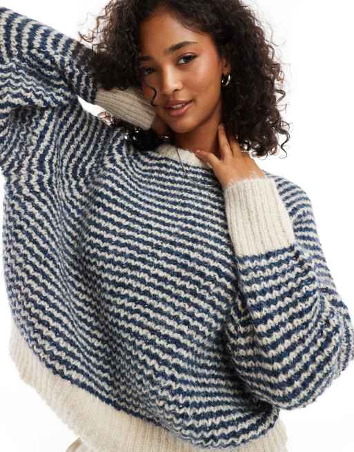 Pull Bear contrast trim slouchy knit jumper in stripe ASOS Very well made.