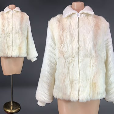 VINTAGE 70s 80s Rabbit Fur Bishop Sleeve Knit Sweater Jacket Black Lotus Vintage Lake Geneva WI Very well made.