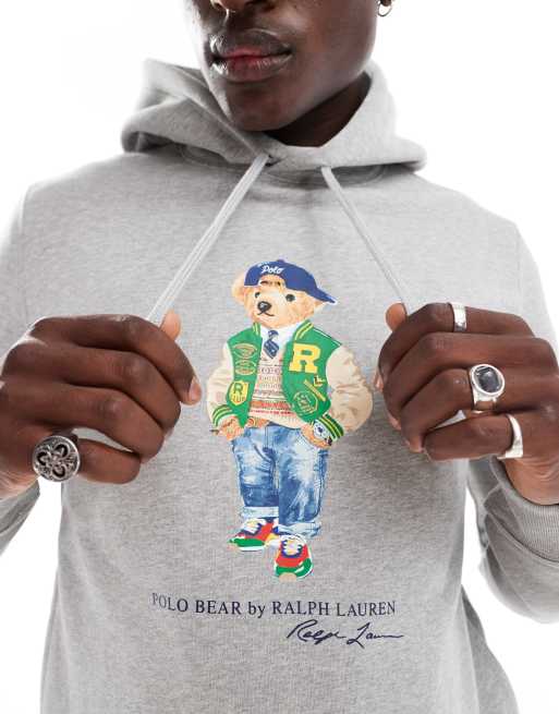 Polo Ralph Lauren varsity bear print fleece hoodie in grey marl ASOS Very well made.