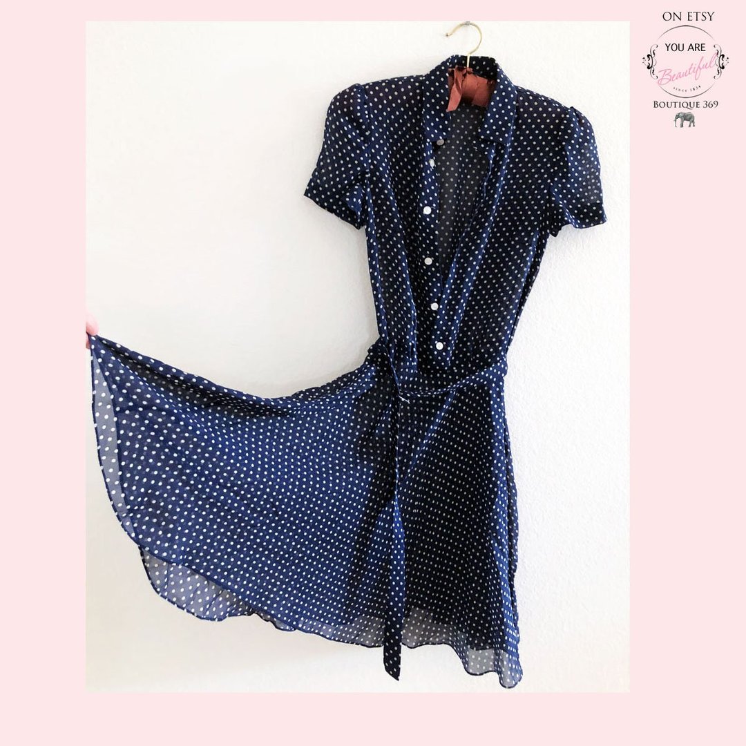 ralph lauren navy blue polka dot dress Very well made.