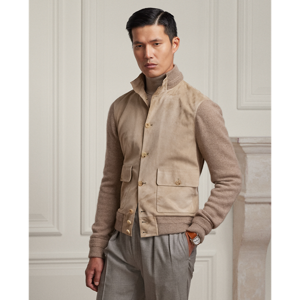 Ralph Lauren Purple Label Suede front Cashmere Cardigan In Truffle Melange ModeSens Very well made.