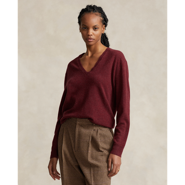 Polo Ralph Lauren Relaxed Fit Cashmere V neck Sweater In Garnet Red Melange ModeSens Very well made.