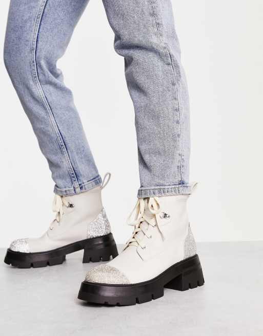 Public Desire Wide Fit Lark Anfibi militari bianco sporco con strass Very well made.