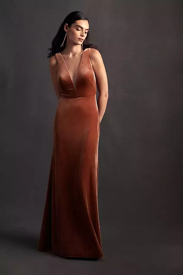 Jenny Yoo Ellis Flutter Sleeve Open Back Stretch Velvet Gown Anthropologie Very well made.