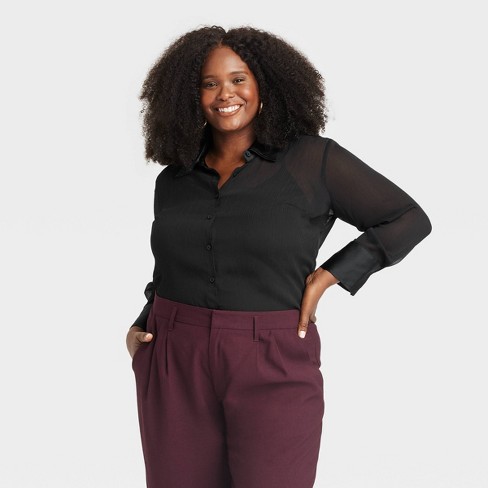 Women s Long Sleeve Crinkle Sheer Shirt A New Day Black 4x Target Very well made.