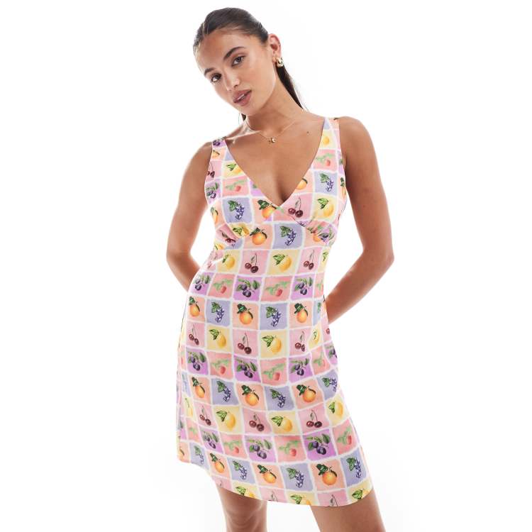 ASOS DESIGN linen look mini summer dress in tile fruit print ASOS Very well made.